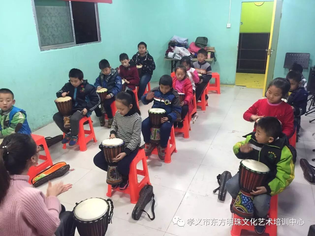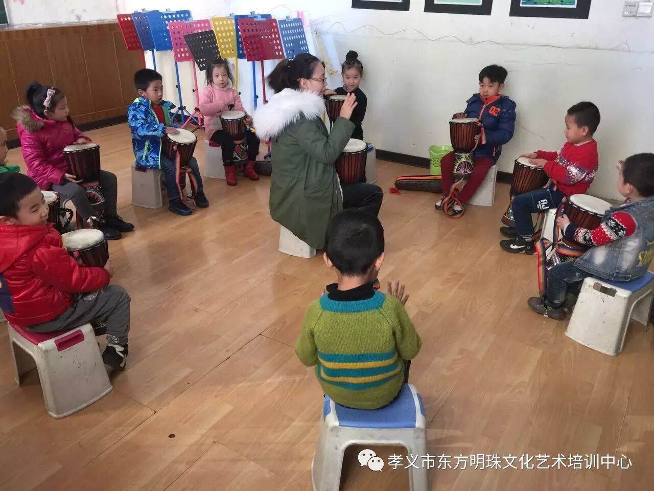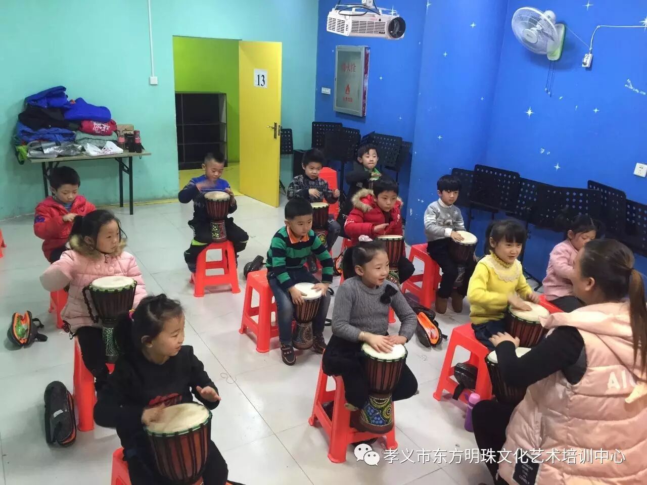 天琴葫芦丝课堂非常有趣:吹一吹、拍一拍、跳一跳。今天的课程中,加入了非洲手鼓的教学环节。每个孩子都是天生的鼓手。