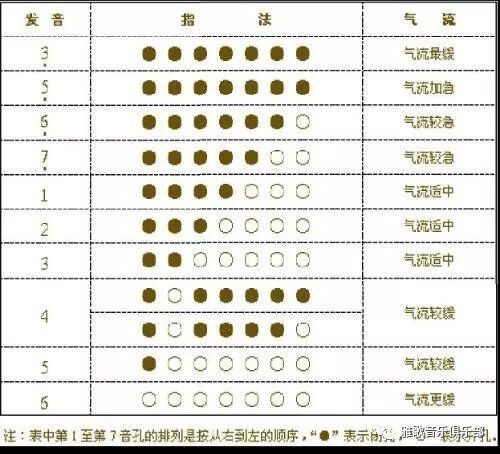 第二步,初学者要重视指法的练习,一般初次接触葫芦丝和笛子一样,以全按作5为起步指法,也就是把所有音孔都按住了,发音从“5(suo)”开始,一般练熟一个指发表差不多一小时应该可以。下图为全按作低音5的指发表。