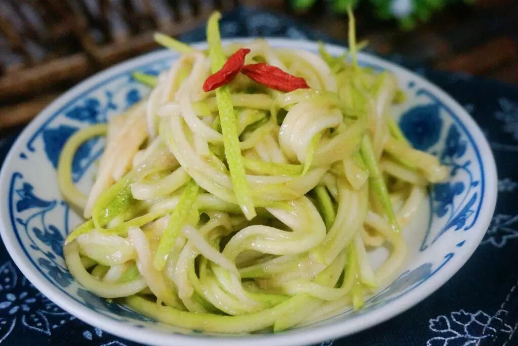 2.一个大碗,放上冰水和一点盐,将西葫芦丝放进去十分钟左右