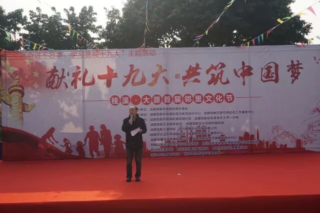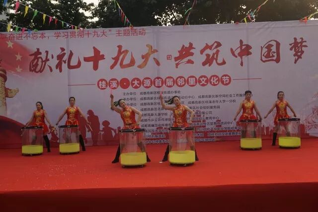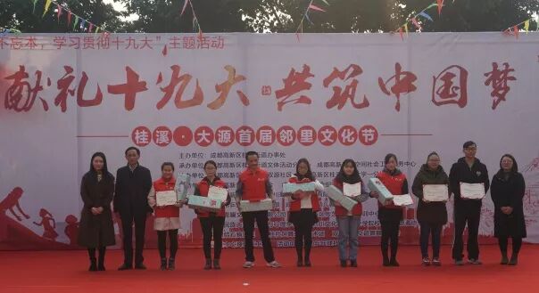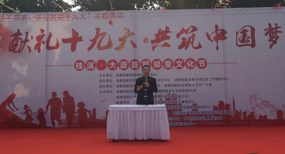 12月21日下午14:00,由成都高新区桂溪街道办事处主办,成都高新区新空间社会工作服务中心承办,成都高新区桂溪街道双源社区、成都高新区桂溪老年大学一分校协办的“献礼十九大,共筑中国梦”——桂溪·大源首届邻里文化节在双源步行街尽头广场隆重举行。