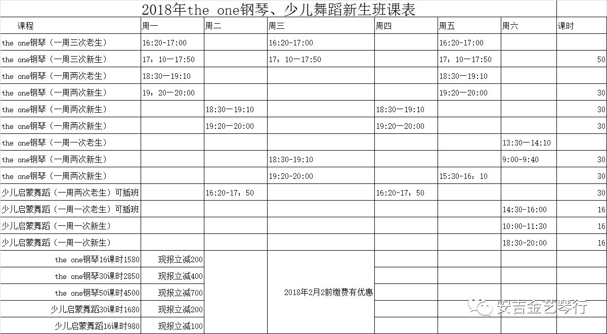 课程 | 班别 | 年龄阶段 | 班型 | 课程时长 | 上课时间 |