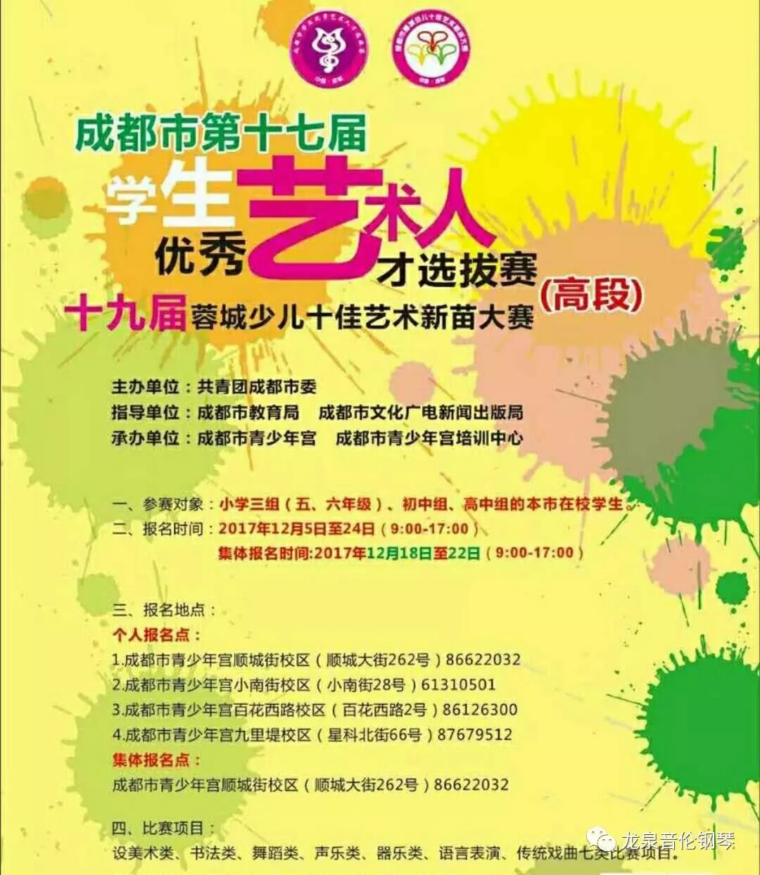 2、小学一组、小学二组:2017年5月(具体时间请关注成都市青少年宫官方网站和微信)