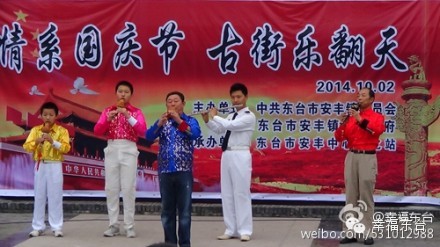 3、10月2日,国庆、重阳双节同庆。上午,东台、大丰两市的戏曲票友们欢聚东台市文化馆,举行东台、大丰国庆、重阳双节联谊演唱会,共度佳节!用国粹经典歌颂祖国,唱响幸福生活!