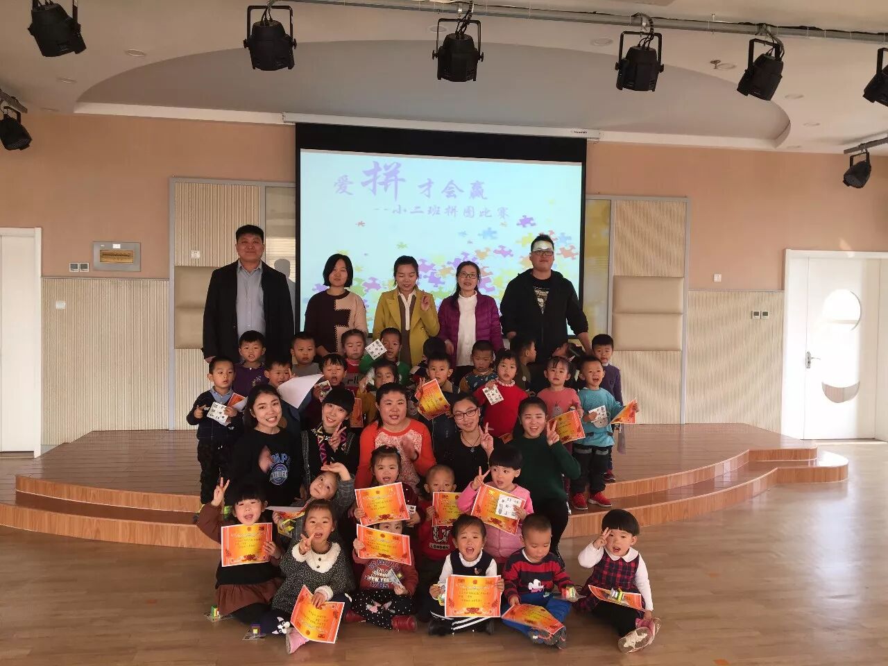 你帮我来,我帮你,我们就是拼图最棒的好宝宝,我们就是乐观向上、勇于拼搏、阳光可爱的小二班。