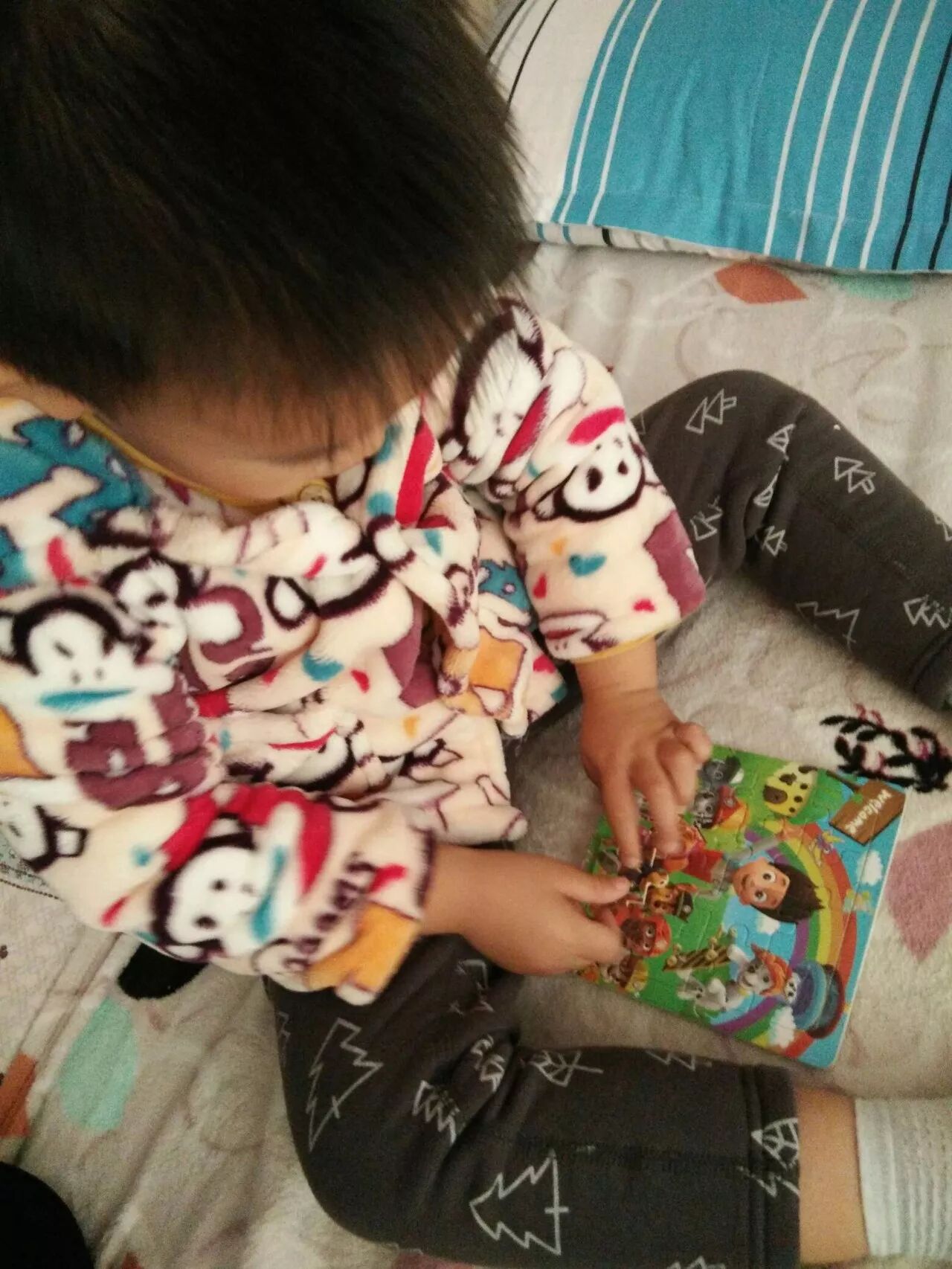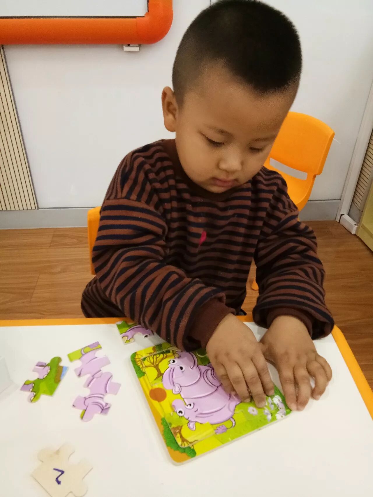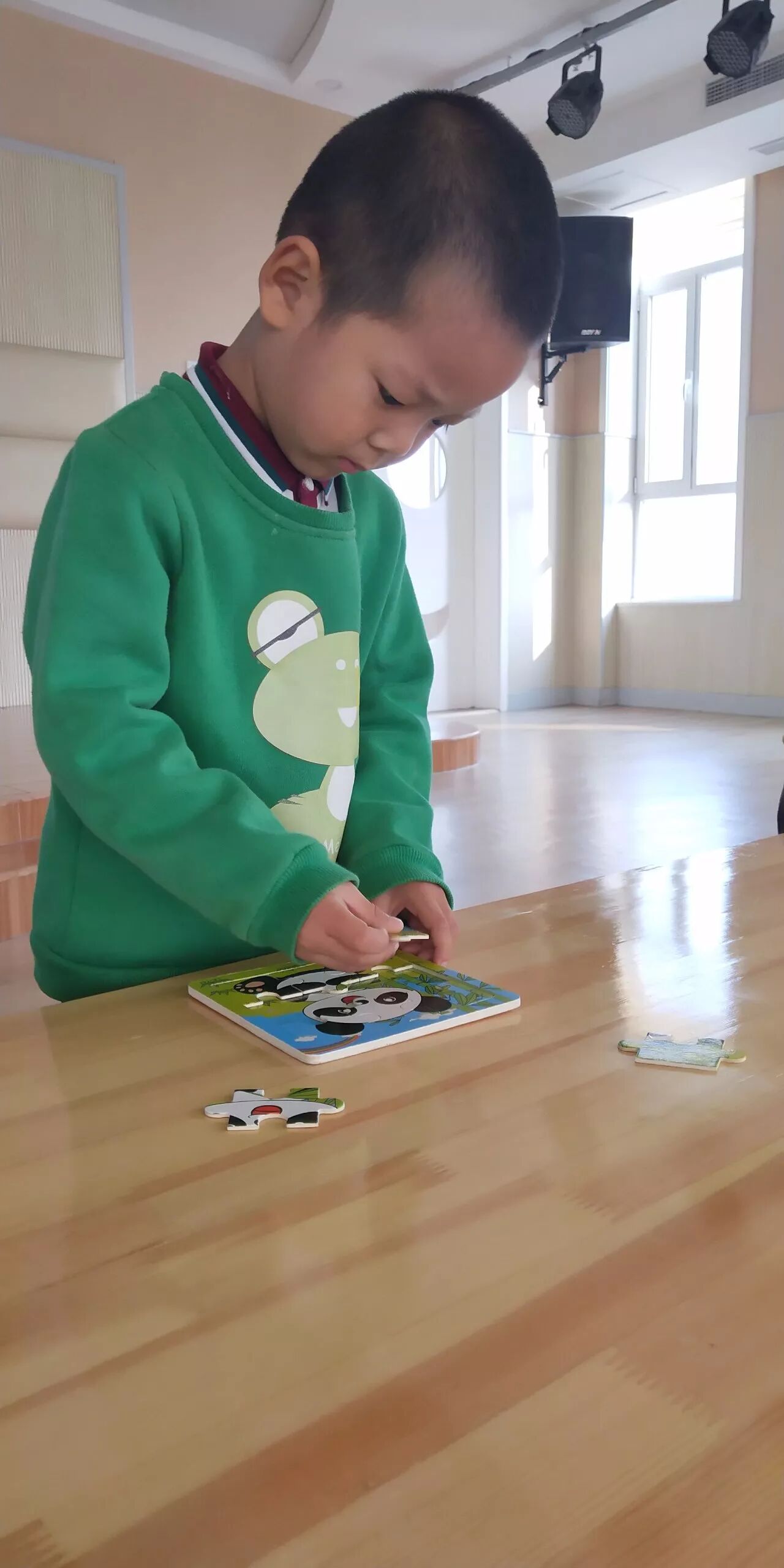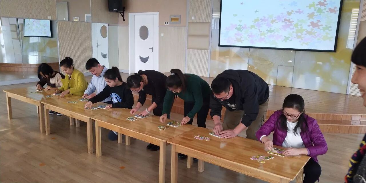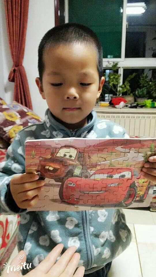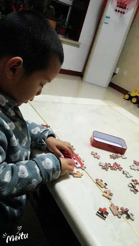 经过我们不断地练习,期盼的拼图小比拼终于来了!眼明手快、奋力拼搏的样子……
