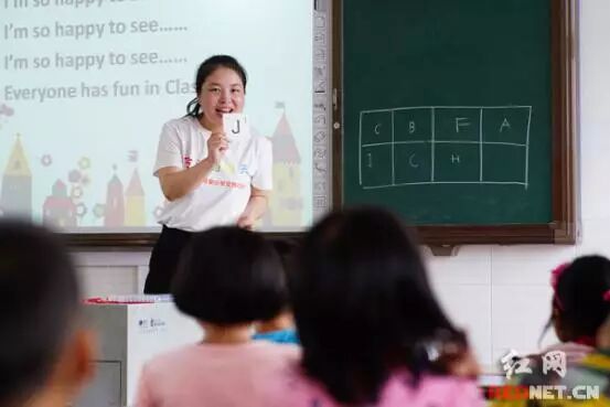 曾在英语培训机构担任老师的志愿者袁音捷,用互动的方式,让孩子们爱上英语课。