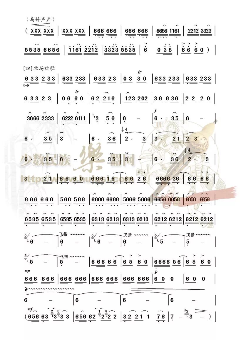 乐曲采用倒叙手法,似马郎牵着一匹爱马,四处寻找心爱的人儿——小兰;中部是故事的主体情节,富有色彩和变化;尾部悠长,给人以遐想……..