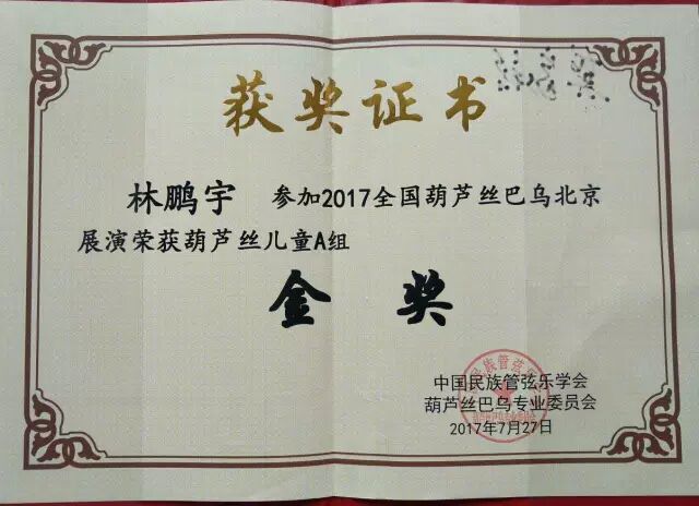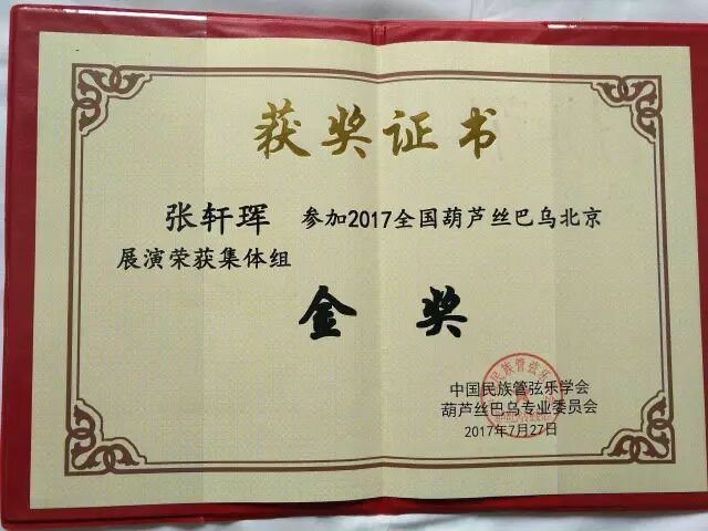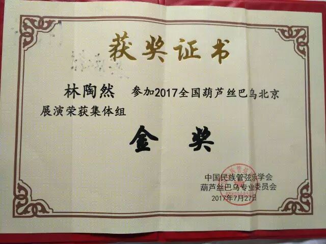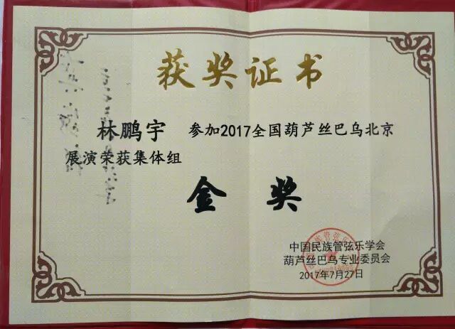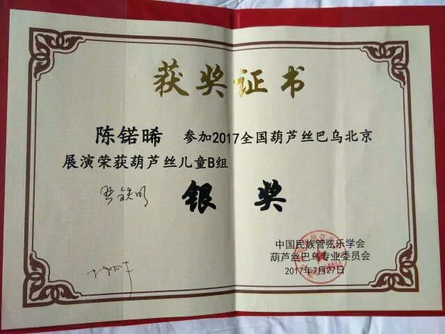 又在全国葫芦丝巴乌专业比赛中获得大奖啦!
