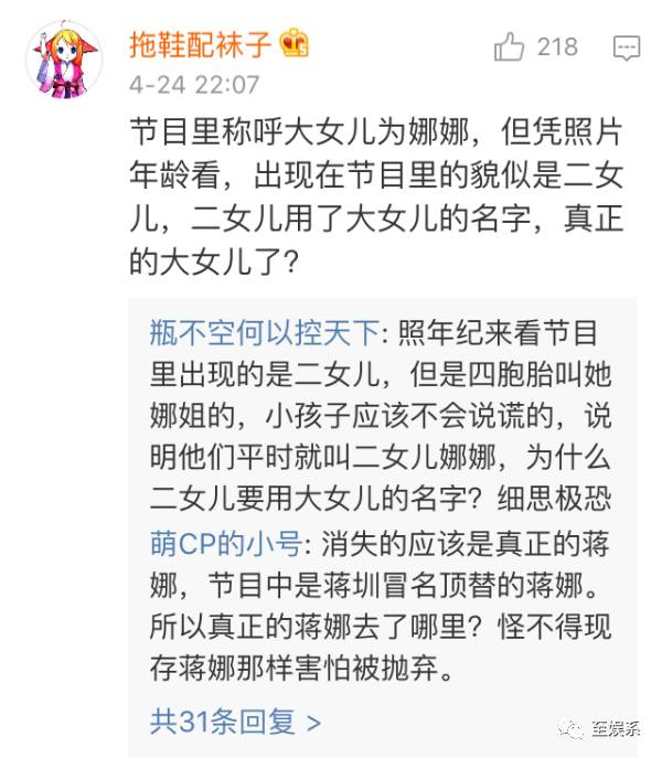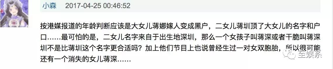 有网友直接质疑,节目中出现的根本不是蒋娜,而是老二蒋圳!消失的姐姐原来是蒋娜!