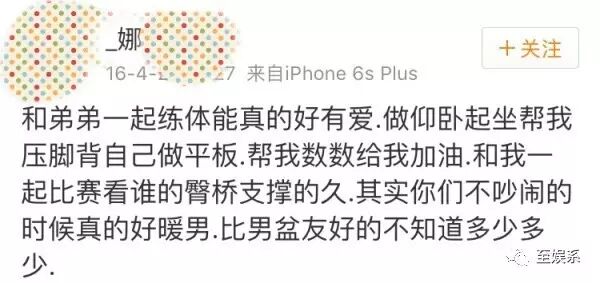 从她的微博里也看得出来,她很爱弟弟,和父母的关系也不错。