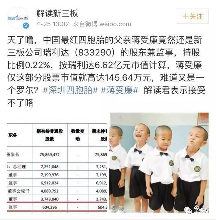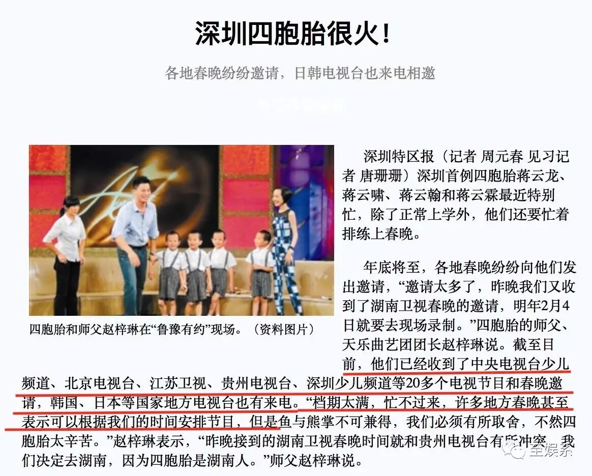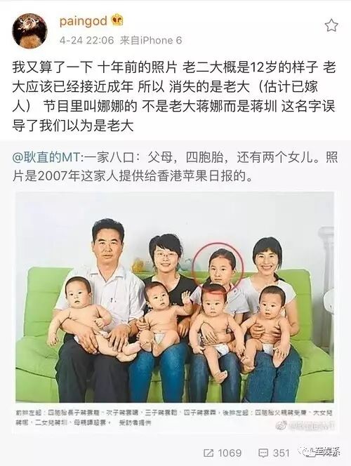 更可怕的是,按照节目中提供的信息来看,蒋娜应该比四胞胎大15岁。