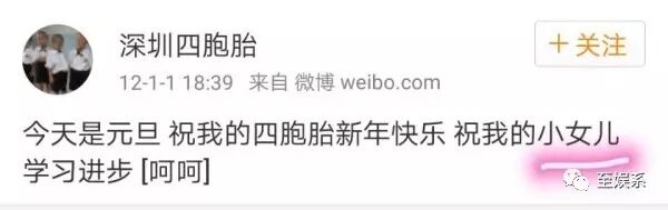 早在5年前,四胞胎的微博内容也印证过两个女儿的存在。