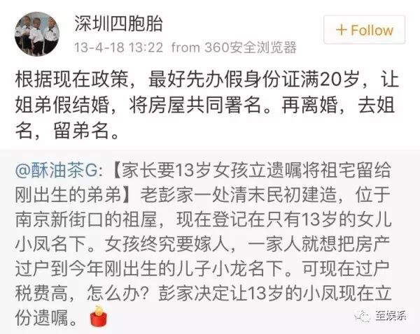 石锤也有,爸爸在微博里分享过怎样将财产「去女留子」的妙招。