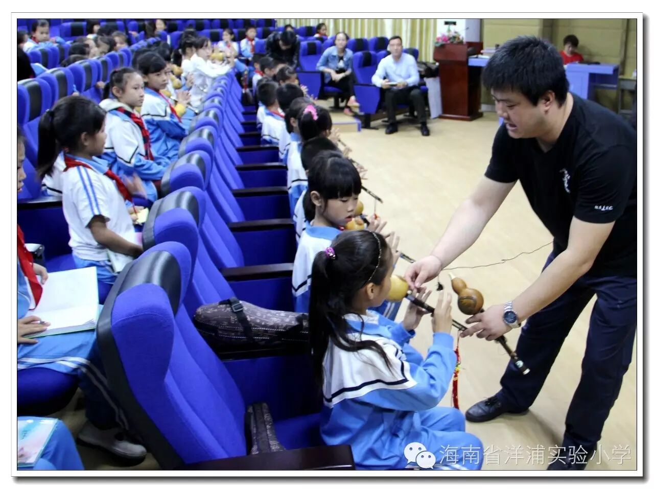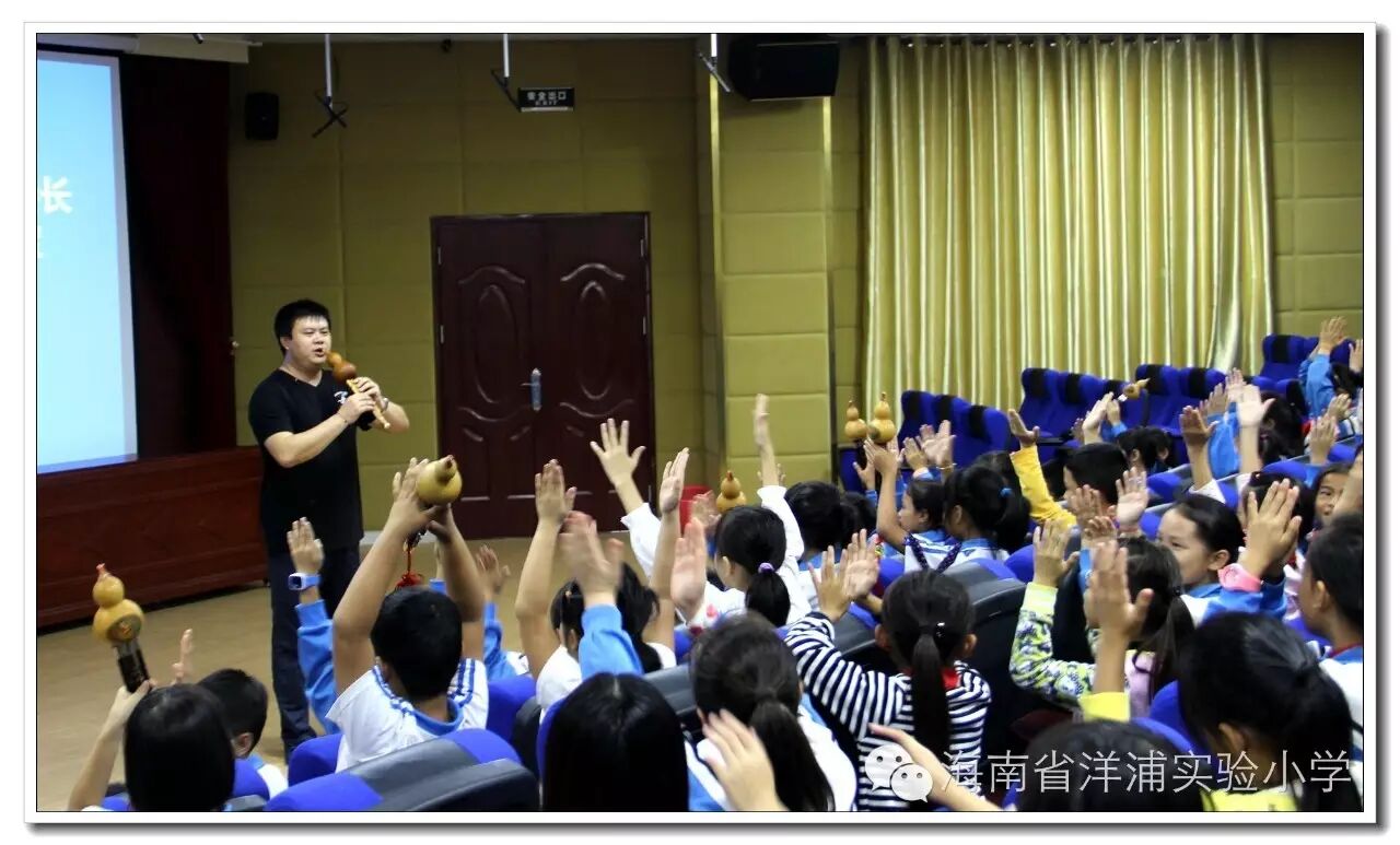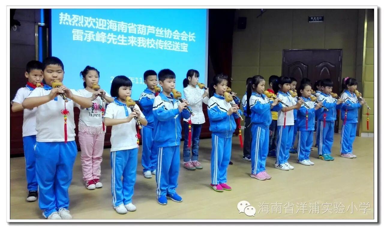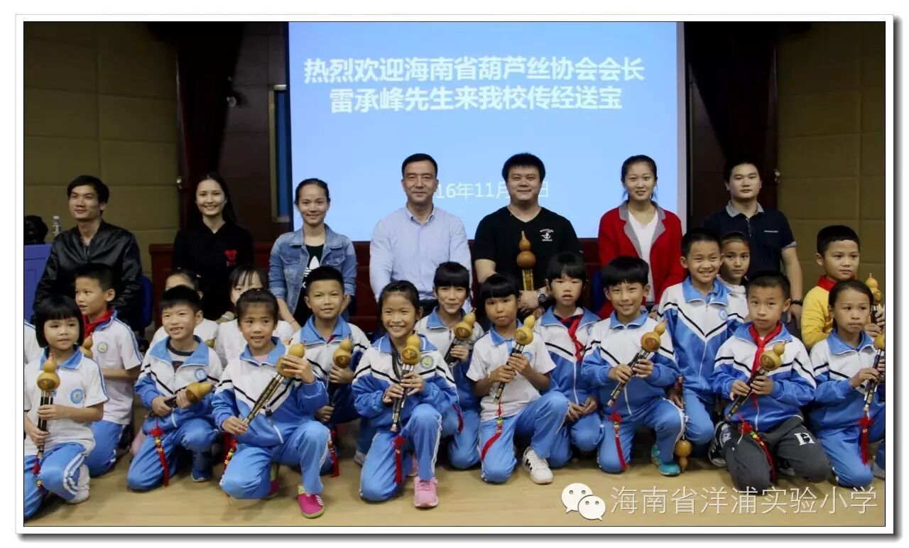 窗外细雨蒙蒙,室内葫音绵绵。11月10日下午,海南省葫芦丝协会会长雷承峰先生来我校为校本课程“海之韵——葫芦丝”班的学生上课。任斌强校长代表学校全体师生对雷承峰先生的到来表示欢迎。,因他高超的演奏水平,曾应邀到世界著名大学——英国剑桥大学、牛津大学演出,受到国际友人的高度好评。