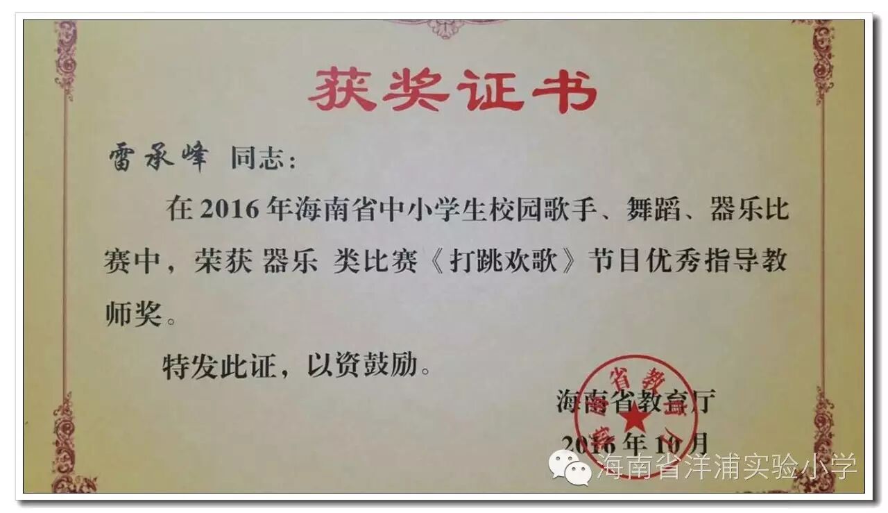 雷承峰先生获得的荣誉证书