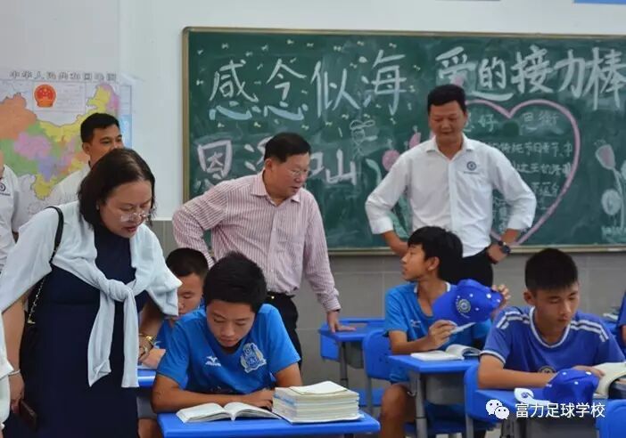 张力董事长一行认真考察了学校四年来的变化,到教室和球场与学生亲切交流,为即将赴考场的初三学子加油打气,叮嘱他们放松心情,考出好成绩。领导嘉宾们兴致勃勃地欣赏了一场高水平的足球对抗赛,对足校四年来取得的办学成绩赞赏有加,希望足校继续努力,越办越好,为中国足球输送更多的优秀苗子。