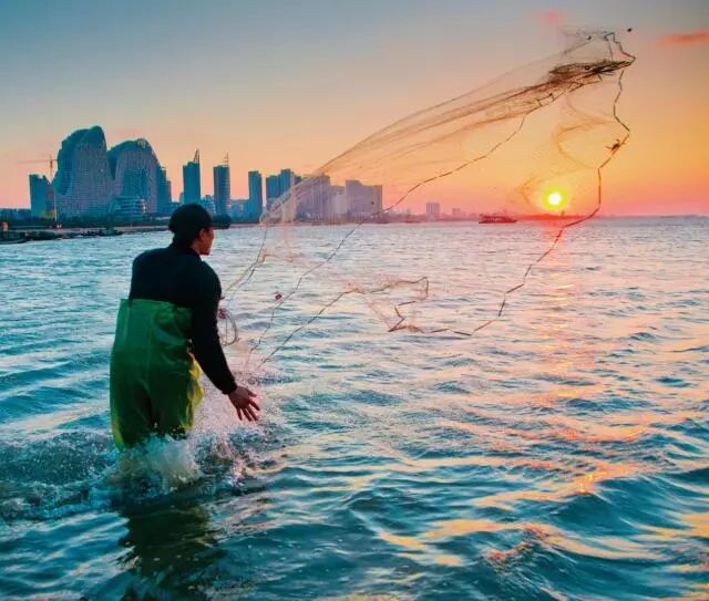 远处海上的渔家抖落一天的疲惫,轻轻柔柔地吹起了葫芦丝,飘飘扬扬地洒落四周,让人忍不住轻唱:月亮醉了,大海醉了……正是:霞雾初散霓灯起,处处寒烟紫,琴声几度入心帘,隐隐约约丝语漫船前。