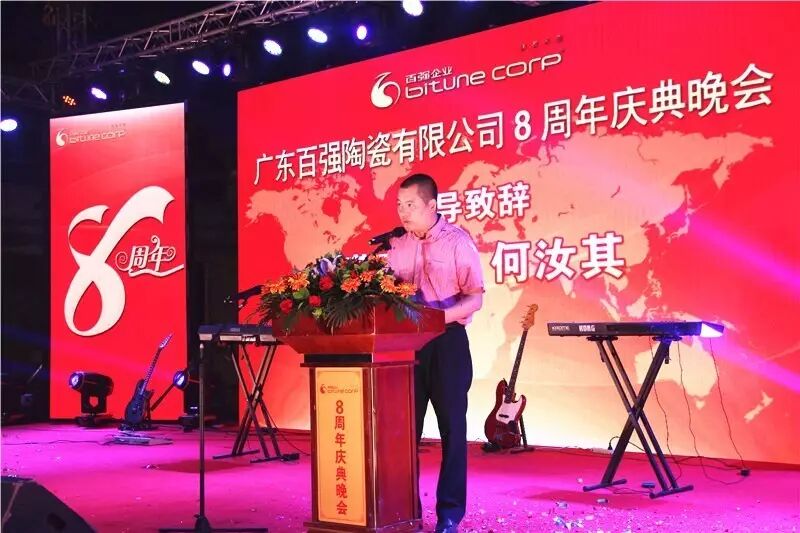 集团董事长何汝其先生发表致辞,对参加本次8周年庆典的来宾表示衷心感谢。对8年来一路陪伴百强陶瓷成长,不断拼搏进取的百强家人们致以最崇高的敬意;对所有奋斗在第一线,挥洒汗水,默默付出的百强家人们表示最衷心的感谢!