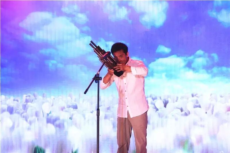 (图为表演节目-- 行政部员工葫芦丝独奏《红尘情歌》 )