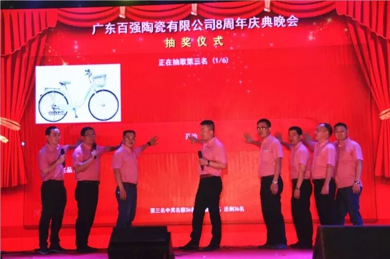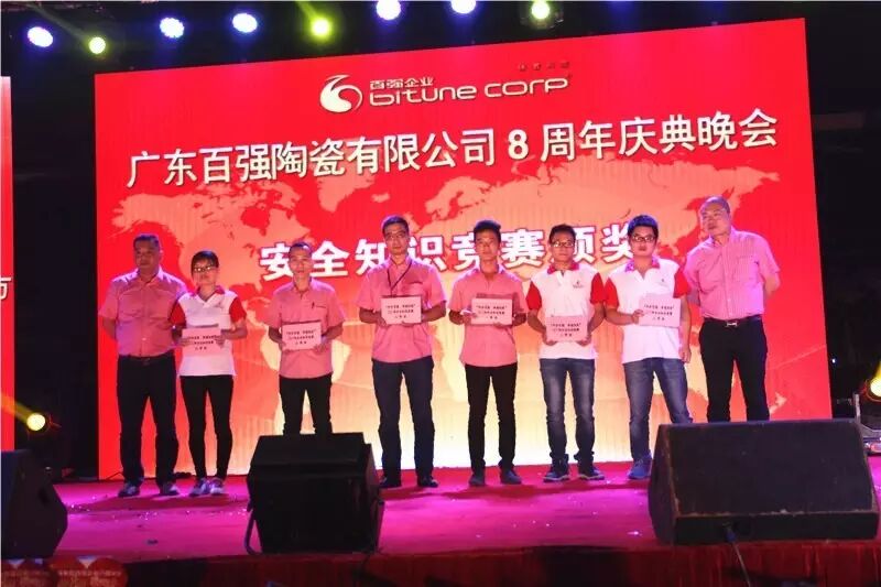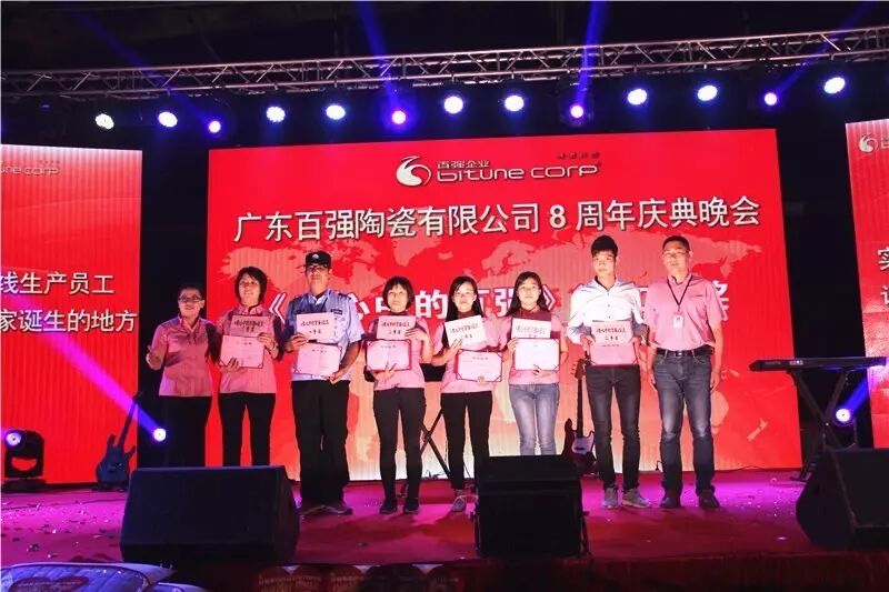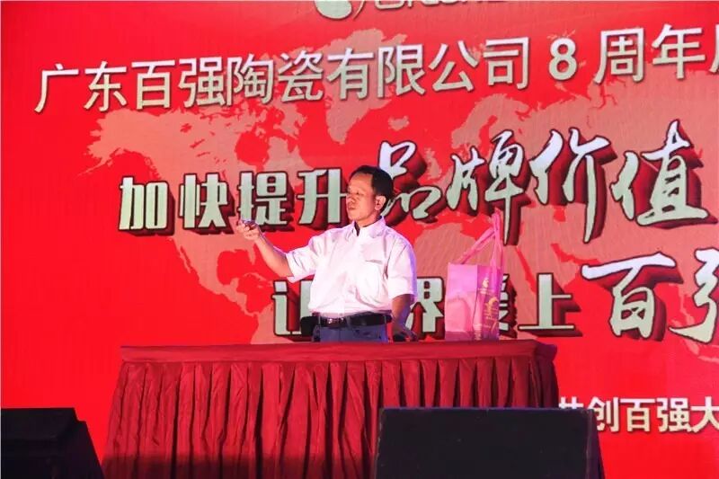 何董表示,今天是广东百强陶瓷有限公司成立八周年的日子,也是百强陶瓷全体职工的节日。八年的征程,既是艰苦奋斗,开拓进取的八年;也是快速发展,满载收获的八年。这期间,百强陶瓷从无到有,市场份额逐年增加,生产基地使用面积不断扩大,品牌知名度越来越高。面对成绩,我们更是心存感激。在此,我代表公司向各位家人们道一声:你们辛苦了!八年只是我们跨出的一小步,我们的目标是让每一个家庭都能用上我们百强陶瓷的好瓷砖。我真诚地期望在今后的日子里,能与各位一起努力,做好产品,做好品牌,做好服务,让世界爱上百强造!