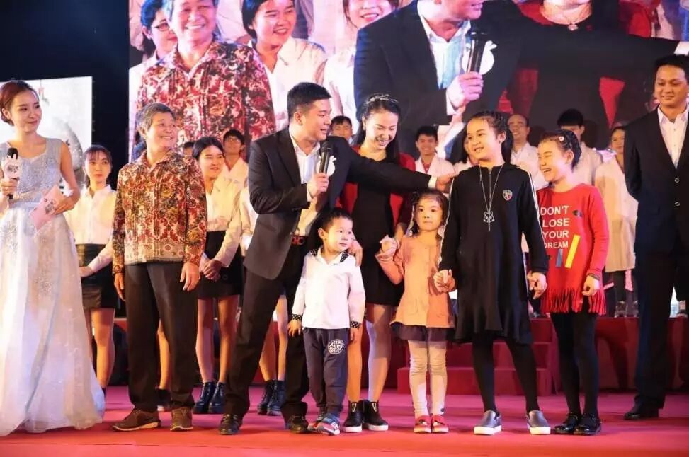 庄总携一家人登台在优秀员工的簇拥下欢迎到场嘉宾,诚意满满的举动让到场嘉宾为之动容,引起现场一片欢呼和掌声。