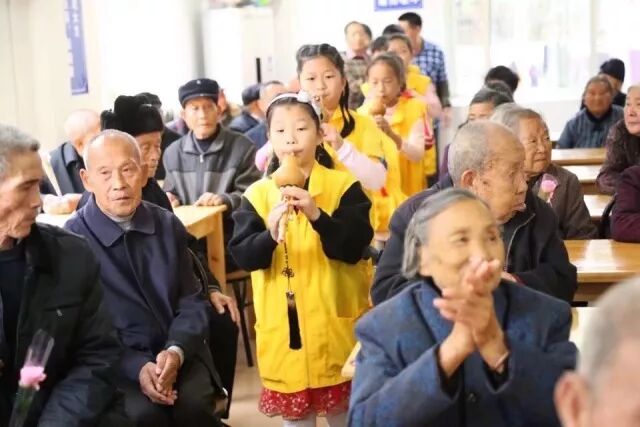 雅韵葫芦丝工作室携乐清市一心一意协会组织本工作室20位【公益小天使】以及成人社工组织“感恩从小开始,让爱温暖彼此” ——走进淡溪镇皇景养老院。