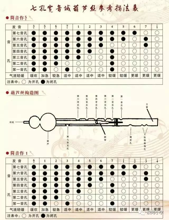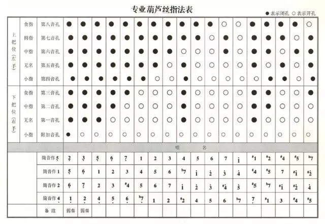 这套指法是最常用也是最实用的葫芦丝指法,适用于90%以上的情形。