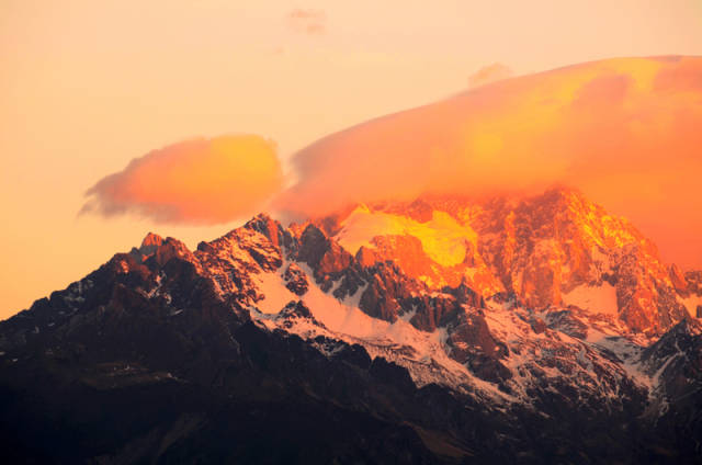 玉龙雪山的夕阳