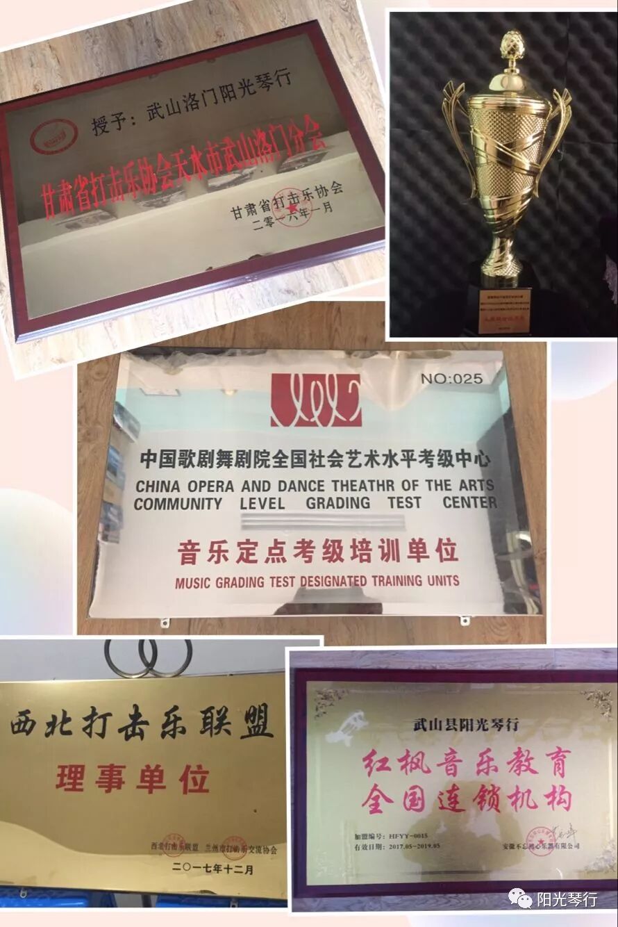 武山洛门阳光艺术培训中心(阳光琴行)成立于2013年8月,位于武山县洛门镇,是一家以乐器培训和乐器销售为一体的艺术培训机构,音乐社会艺术水平考级定点单位,红枫音乐教育全国连锁机构,西北打击乐联盟理事单位。在当地举办两届摇滚音乐节。教学成绩硕果累累,毕业学员遍布全国各地。