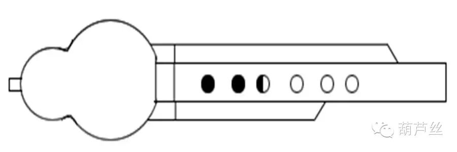 比如《好汉歌》中的#4、《多情的巴乌》中#1、#5、《微山湖》中的#1、《黄土谣》中的b7……,这些音可以用遮半孔的方法吹,比如#1,不要把第三孔全部堵严,而要留半个孔,这个需要反复练习才能掌握,#1有一定的向2靠近的“倾向性”,因此,吹成比标准的#1还高一点点(靠近2)也可以,但最好不要靠近1。【如下图所示】
