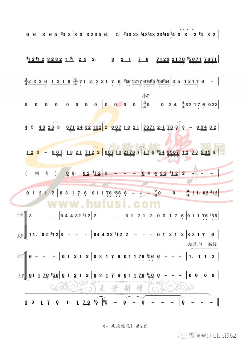 王芳的葫芦丝的确吹得不错,她很有才,心思细腻,而且很用功,非常认真。她对艺术的执着追求使人动容,她对音乐的悟性让人折服,她对老师的尊重让我感动,她对葫芦丝的深情让我这个在葫芦丝界混了一辈子的“老江湖”也颇为感叹。这次为王芳量身定做的《一朵玫瑰花》,是我和我女儿的又一次大胆尝试。提到《一朵玫瑰花》,这是一首家喻户晓的新疆风格的声乐作品,人们自然而然地就会联想到新疆姑娘那婀娜的身材,妩媚的大眼,飞甩的长辫,旋转得如同一朵盛开的鲜花一般的长裙。新疆歌舞的那种火辣的情,撩人的媚,音乐中那份跳动的节奏,多调式、多声部的动感旋律,总会让你心痒痒地,脚痒痒地,不自觉地就会随着音乐踏歌起舞,热血沸腾。这首曲子曾被改编成很多器乐版本,但用葫芦丝来演奏的并不多,因为葫芦丝音域有限,很难表现多调性及音域广的乐曲。为了追求多调式的效果,解决葫芦丝演奏中转调难的问题,让葫芦丝柔美的音色也来感受一下火辣的感觉,我们在原有的新疆民歌旋律中加入了葫芦丝的元素,在旋律以及调式上进行了研究和创作。频繁的转调,移调,曲式复杂但旋律流畅,调式新颖,衔接自然。细腻地演绎,原汁原味地呈现,让葫芦丝的柔美加上新疆的热情,打造出一种冰与火的洗礼,慢与快的对比,单旋律与多调性的交织,情感与技巧的结合,速度与力量的碰撞。我们就是要尝试别人没有写过的东西;我们就是要用现代高科技去表现传统的民族音乐灵感;我们就是要在创作上做敢于挑战自我的前沿先锋;用葫芦丝去诠释全新的,完全不一样的,令你耳目一新的新疆的热情与奔放。这一切在王芳的葫芦丝演奏中都表现得淋漓尽致,她细腻,深情,奔放,流畅,她的演奏既有南方温柔多姿的甜美,又有西北火辣激情的灵动,令你浑身躁动,余音绕梁......