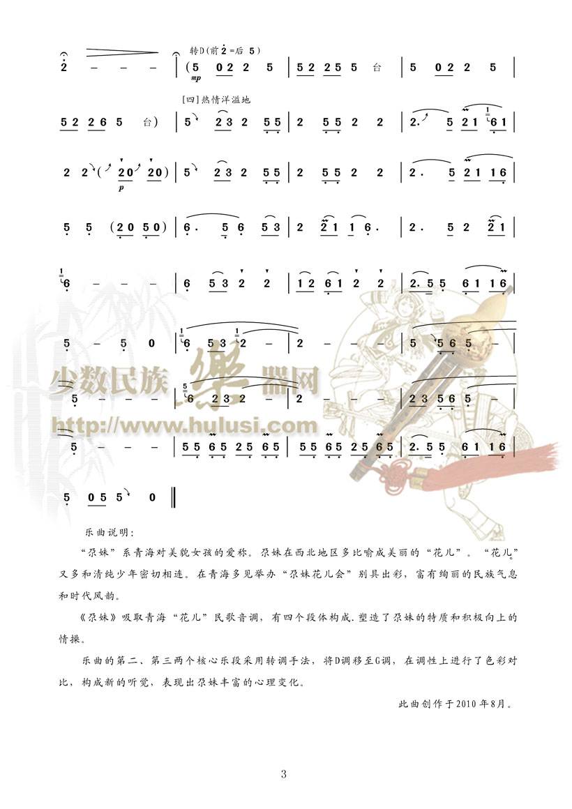 备注:如果点击上方的绿色按钮无法听到音乐,大家在文章的右上角打开 “:” 选择“在浏览器中打开”,再点击绿色按钮,就能听到音乐啦。该曲谱来自少数民族乐器网,欢迎大家提供无水印曲谱。