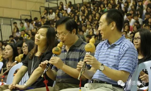 顺德职业技术学院夏伟校长(中)吹奏葫芦丝