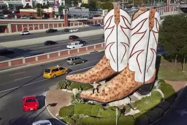 这双世界上最大的牛仔靴雕塑高为10.4米,是由来自美国德克萨斯州72岁的Bob Wade 打造而成。Bob Wade是一名另类艺术家,他专注这项事业长达40年。这双巨大的靴子完成需要耗时三个月的时间,而现在这个不凡的雕塑正昂首挺立在通往圣安东尼奥的高速公路旁。