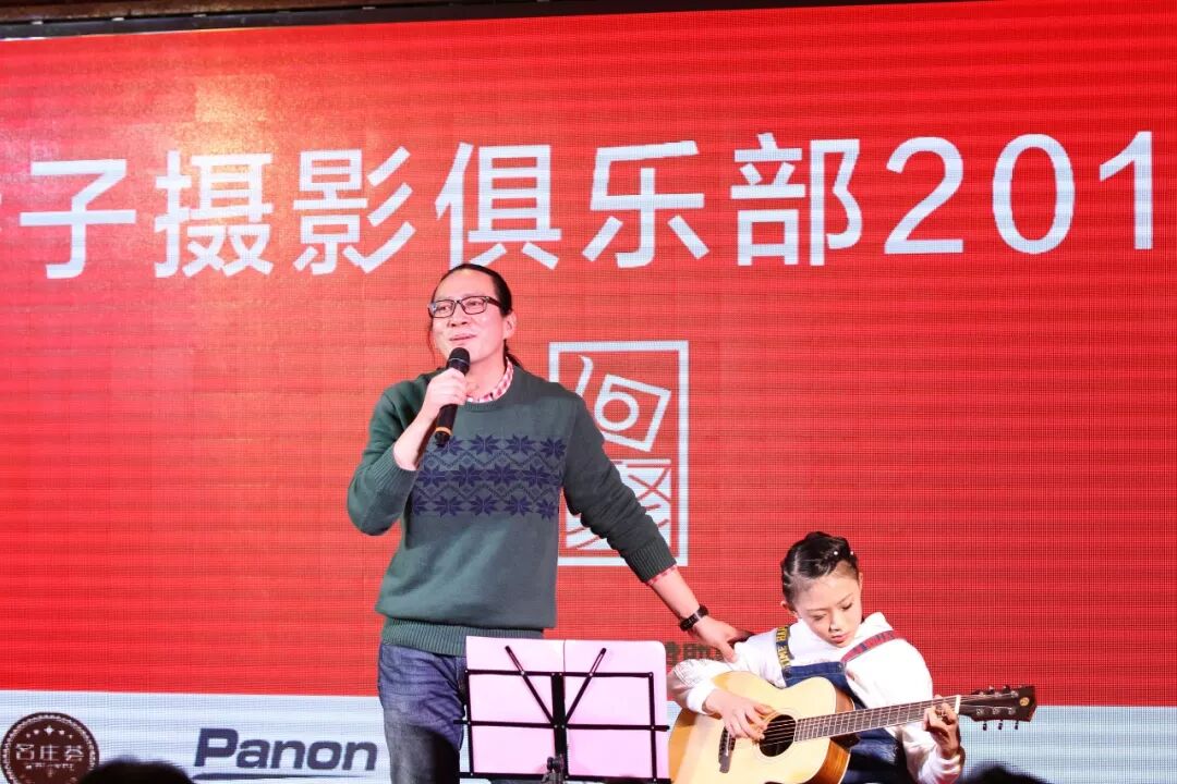▲朱海燕老师携爱女共同演绎吉它弹唱,引来满场喝彩。