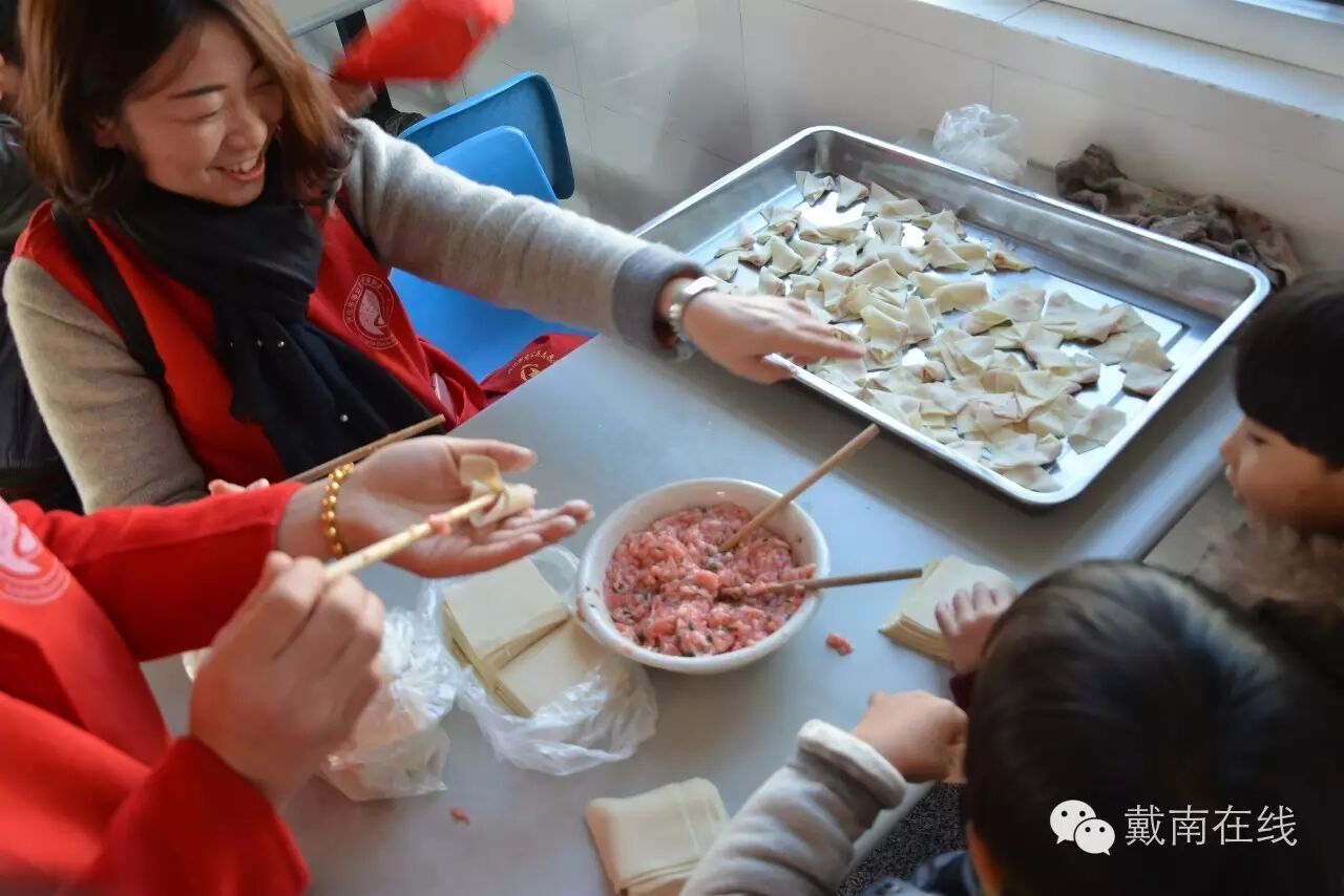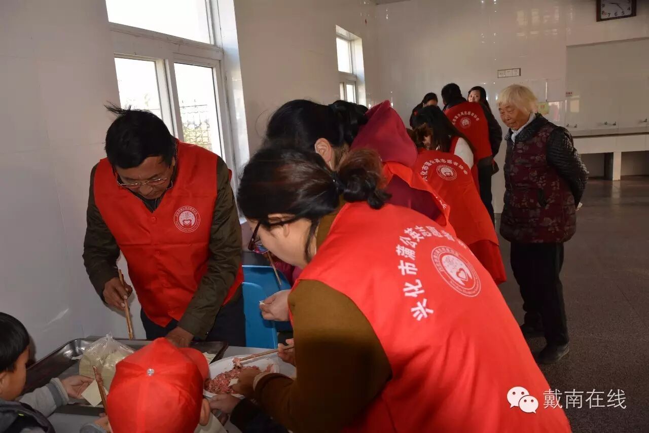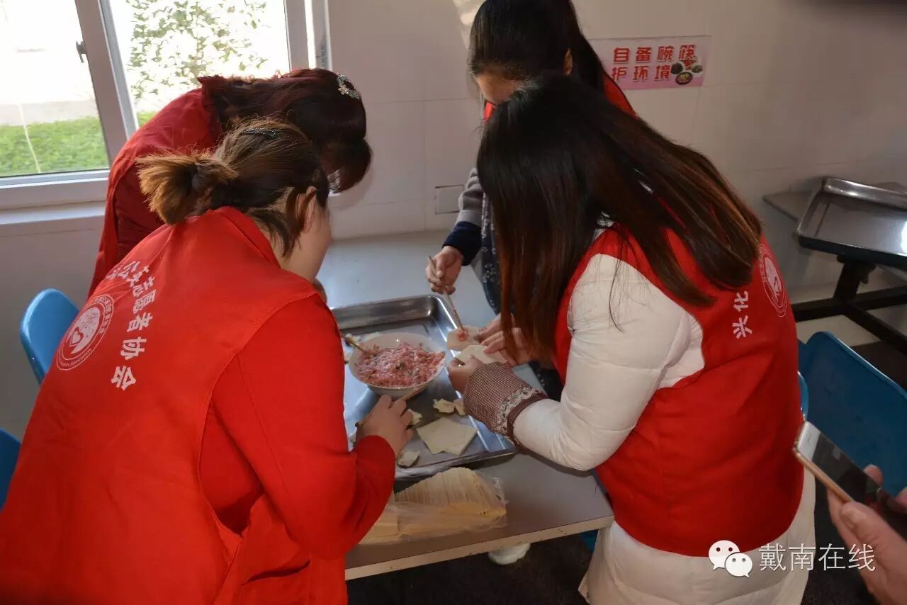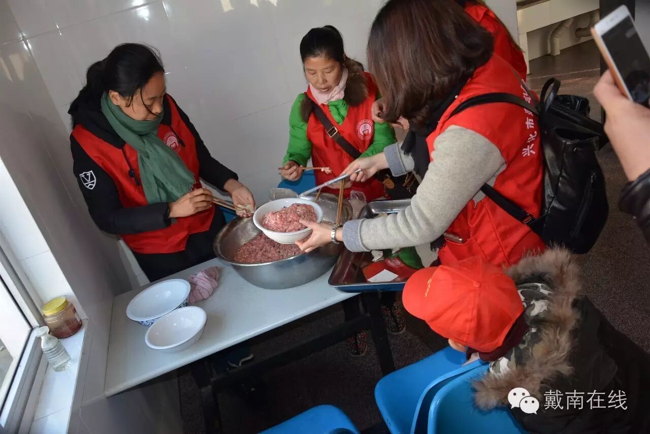 老人在看节目的时候,我们蒲公英美女会员们正在忙着给老人们包馄饨