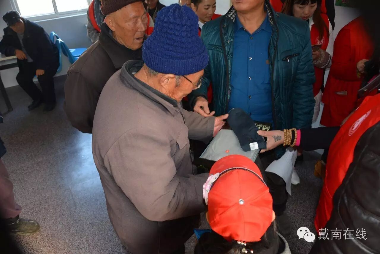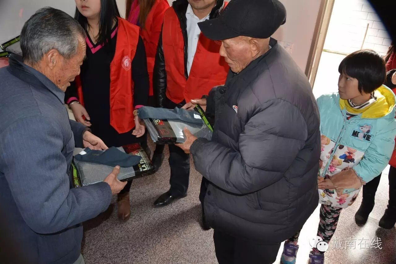 节目表演完后,蒲公英会员们给老人们派发棉衣棉裤、袜子
