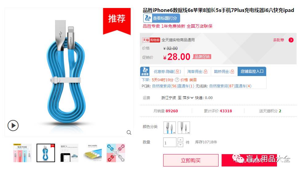 【推荐理由】适用苹果系,3D立体线身,全新设计,颜值与质量并存,兼容苹果家族所有lighting接口产品,让你充电也能与众不同【多色可选】