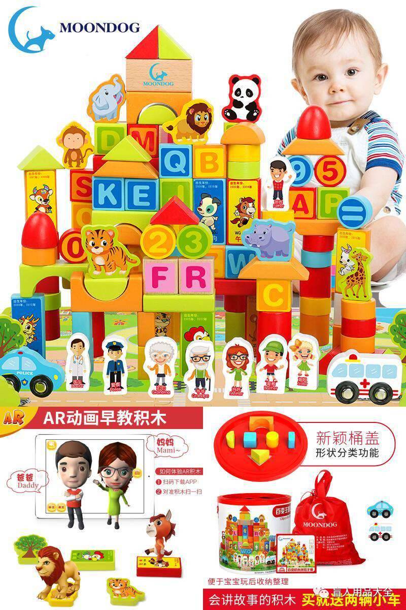 【推荐理由】下单就送2辆玩具车 收纳袋,AR动画早教积木,让积木变成百科全书,木制环保,安全放心,光滑无倒刺, 收纳袋,AR动画早教积木色彩丰富,搭建孩子的梦想世界!