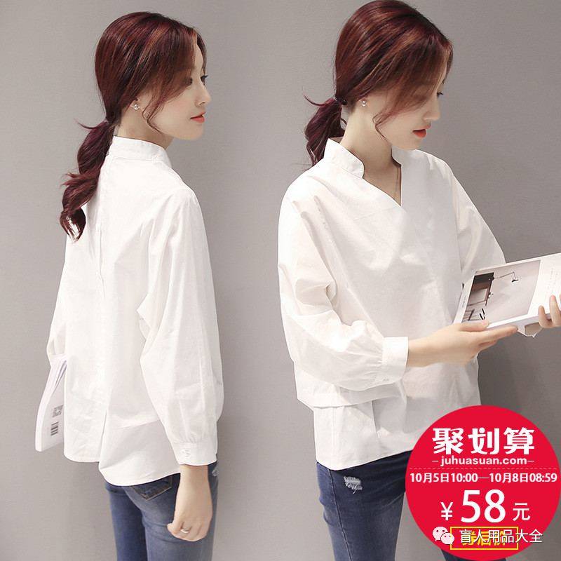 1、v领宽松白色衬衫套头衬衣