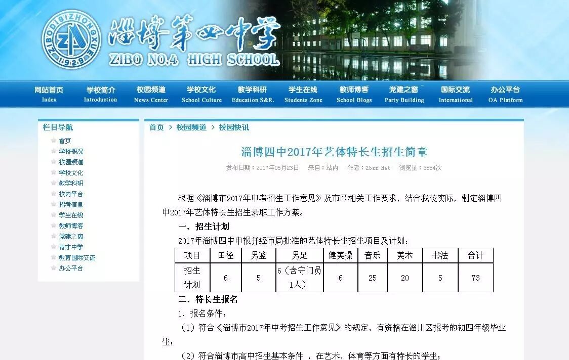 根据《淄博市2017年中考招生工作意见》及市区相关工作要求,结合实际,淄博四中制定2017年艺体特长生招生录取工作方案。