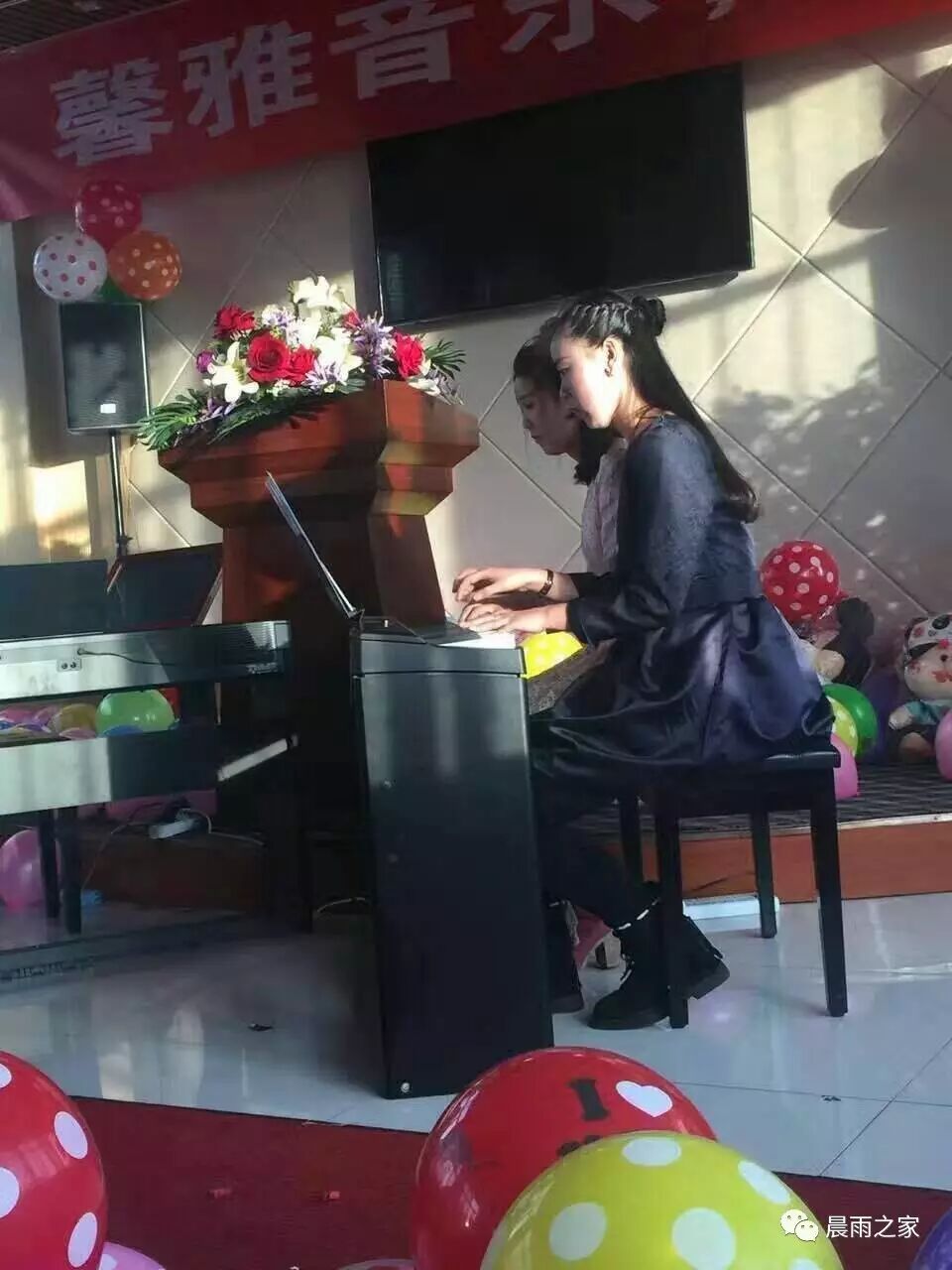馨雅音乐学习班的刘老师在演奏钢琴。