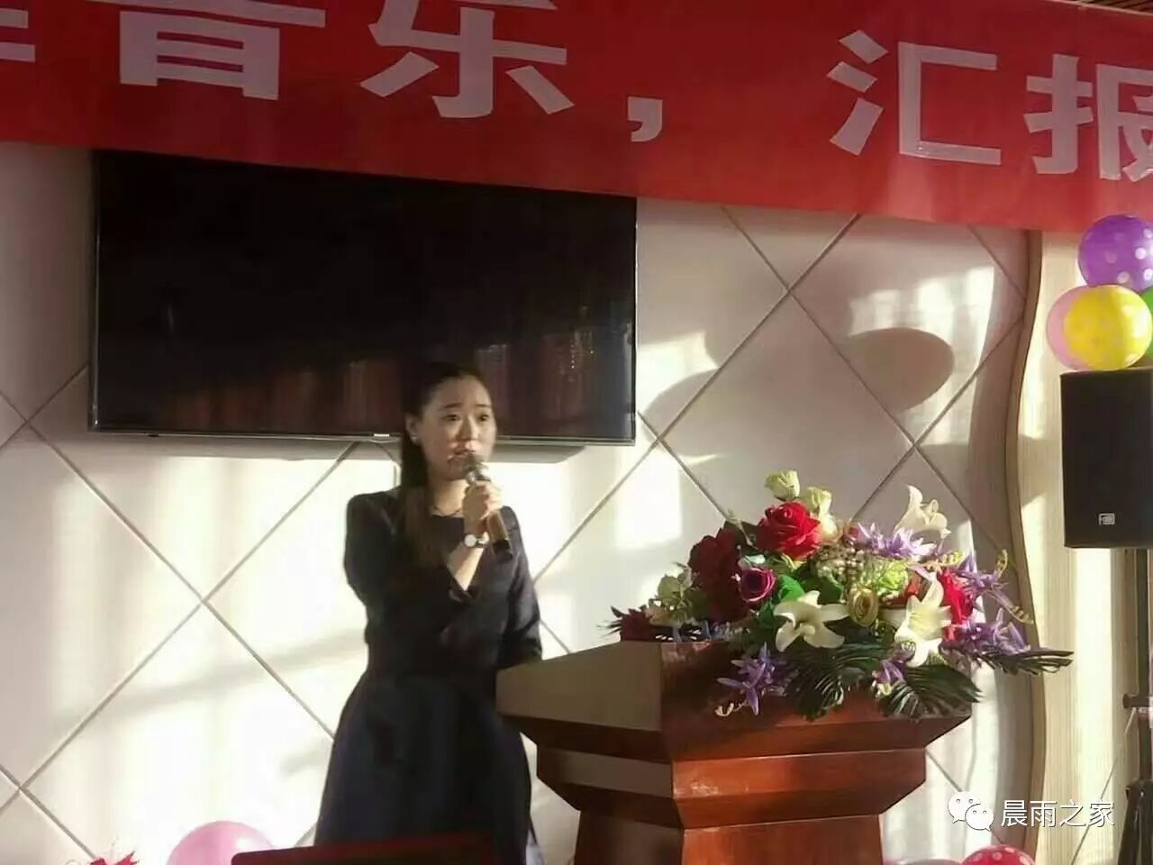 馨雅音乐学习班的郭老师在音乐汇报演出会上做精彩的发言。她说:“馨雅音乐学习班可以带给孩子一个充满欢乐而又充实的假期和快乐的童年,让孩子感受音乐的魅力,接受艺术的熏陶!我没有资格说累,因为所有的一切都是我自己的选择,我都会用心去做。祝孩子们在馨雅音乐学习班天天开心,茁壮成长!”