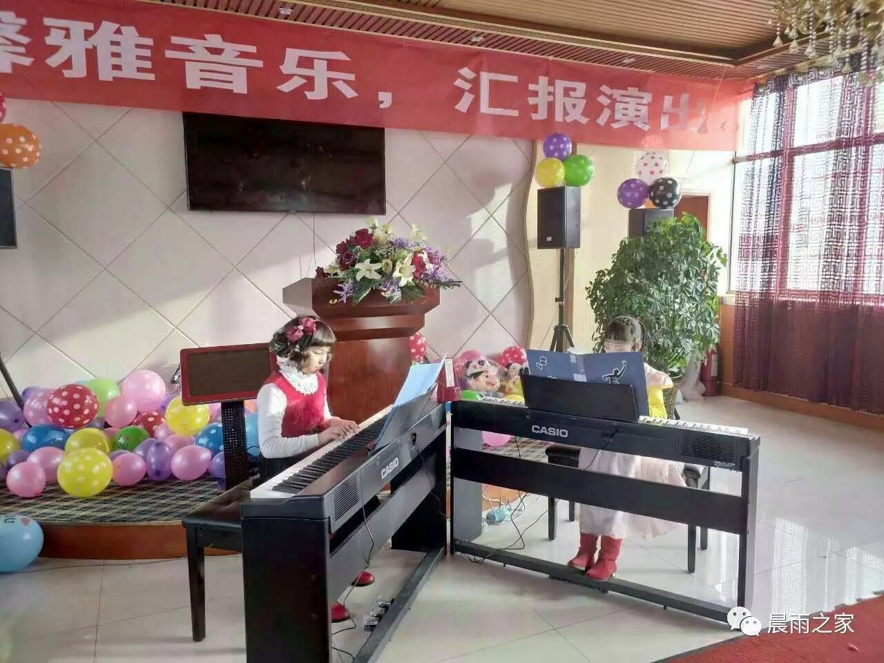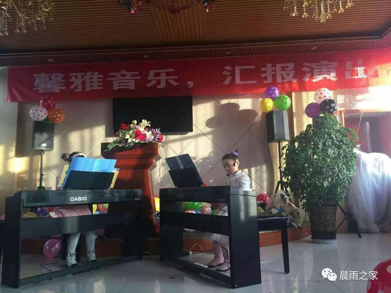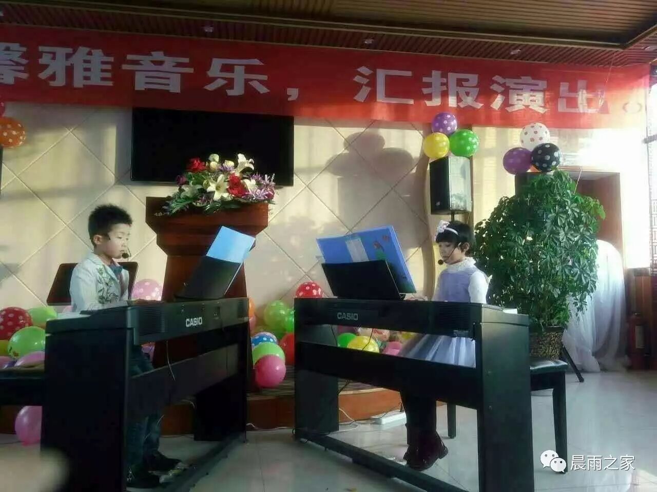 馨雅音乐学习班的小孩们在汇报演出会上用钢琴演奏着一曲又一曲的音乐,小小的手指织出优美的乐章,这是献给老师、父母和关爱他们的人一份厚重礼物。