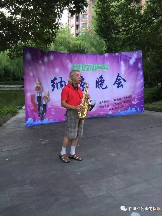 纳凉晚会的节目形式丰富多彩,除了葫芦丝吹奏以外,还邀请了上过中央电视台表演的郑老师给大家表演萨克斯。