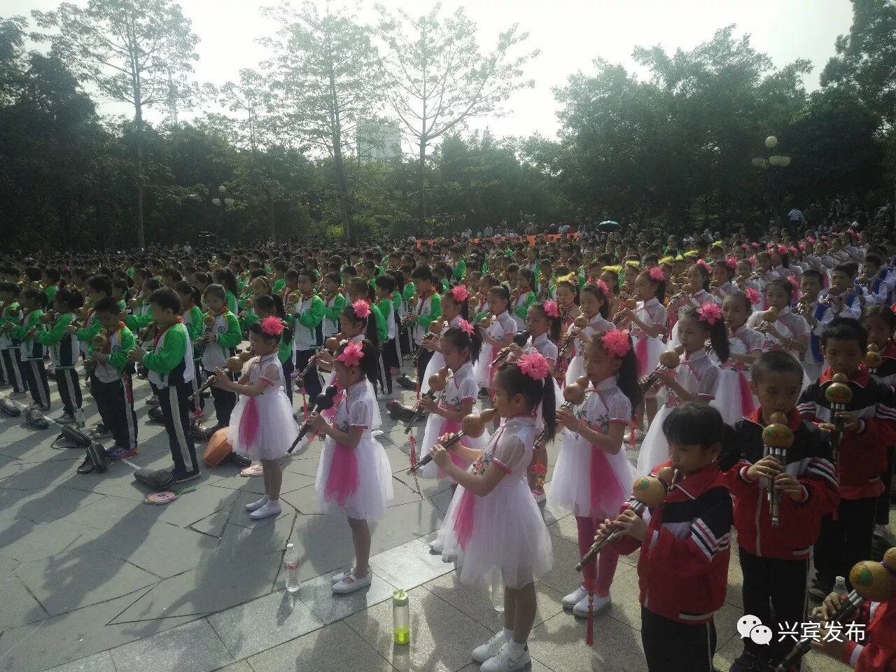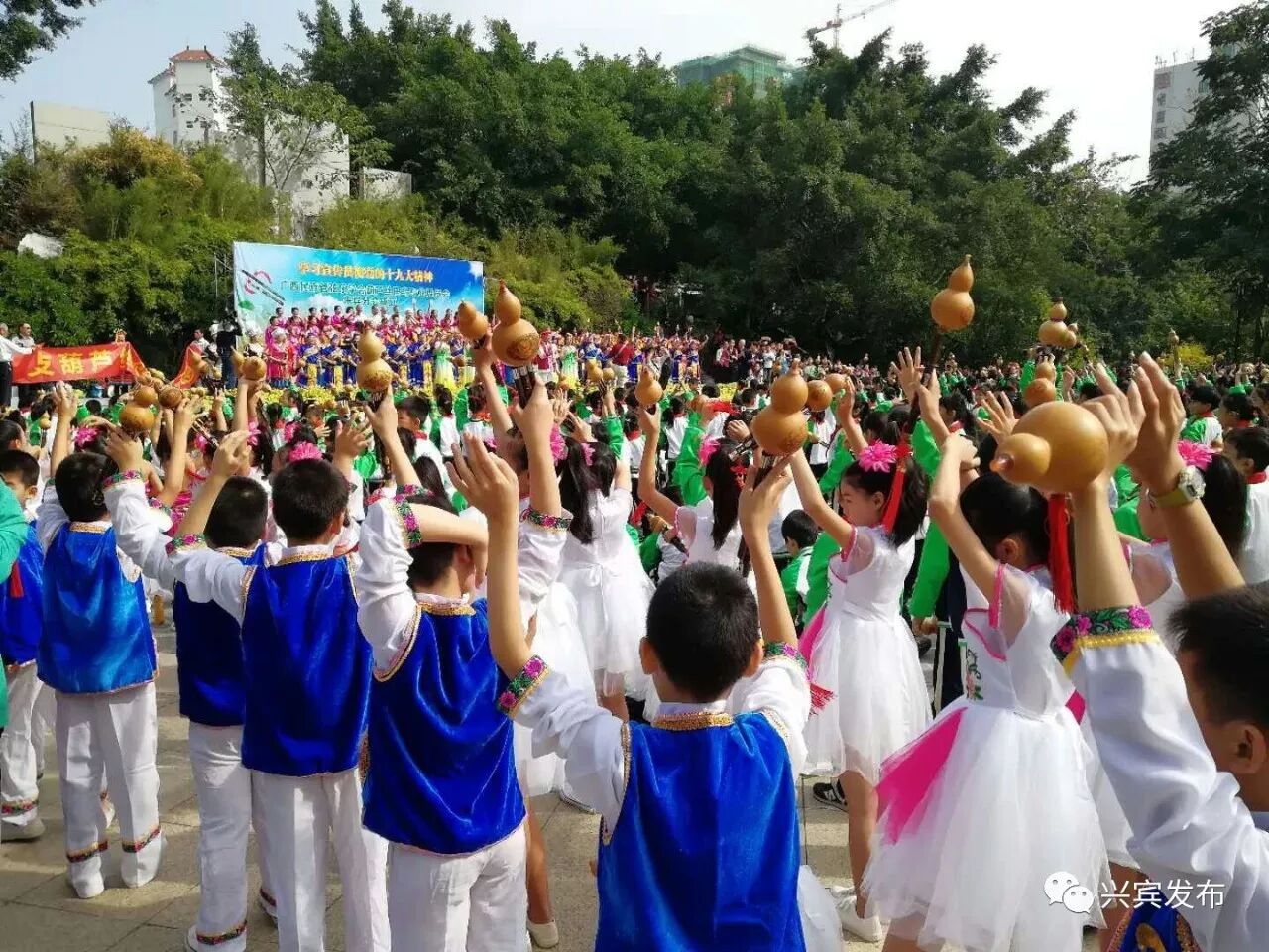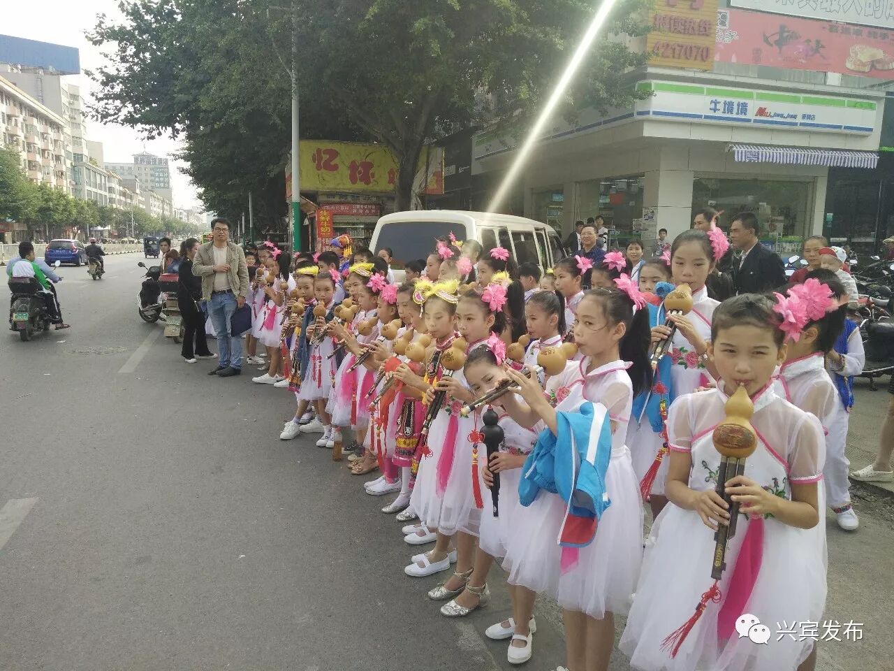 11月4日上午10点,该校学生参加来宾市“千支葫芦丝颂党恩”活动,、《唱支山歌给党听》、《山歌好比春江水》、《只有山歌敬亲人》四首歌曲,大家用葫芦丝吹奏的独特方式欢庆十九大、宣传十九大,表达了壮乡人民对党的无限爱戴和感恩之情。
