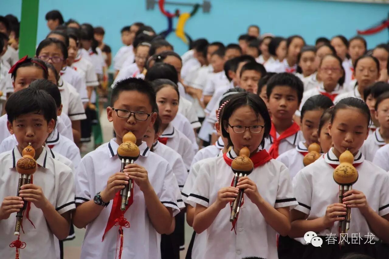 接下来三、四年级同学吹奏了《欢乐颂》、《洋娃娃和小熊跳舞》、《牧童》、《阿里郎》、《康定情歌》等曲目。五年级一、二、三班的同学共同吹奏了《草原上升起不落的太阳》,四、五、六班的优秀学员吹奏了《金孔雀轻轻跳》。