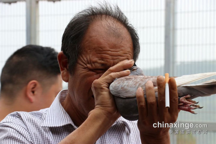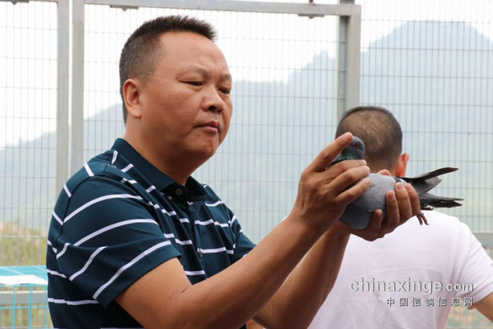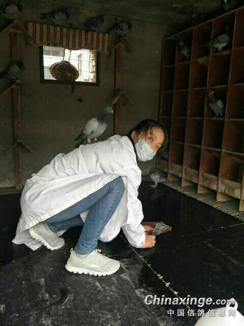 集鸽现场的靓影:女鸽友抓鸽、持鸽、扫描很专业