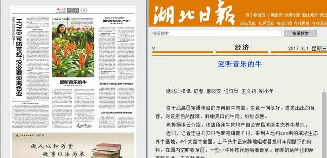 《爱听音乐的牛》在湖北日报上发表