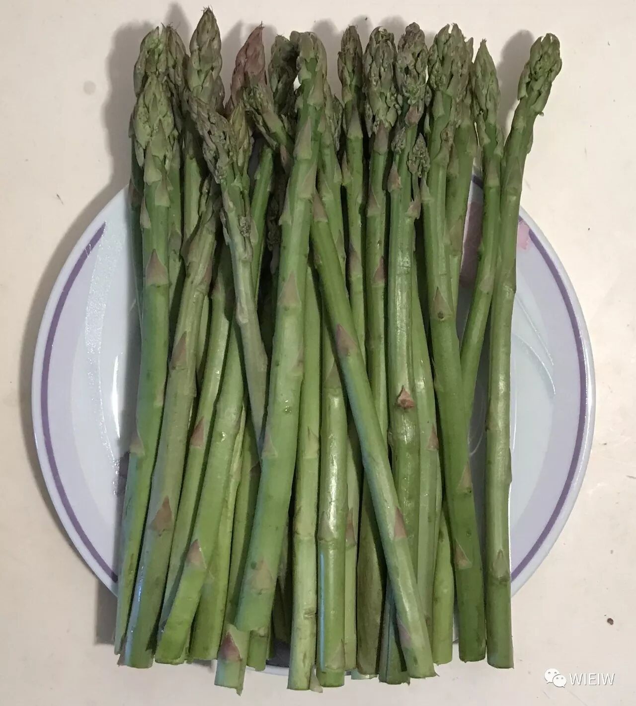 -芦笋:先拿一根芦笋,抓住两端将芦笋掰弯到断裂,从顶端到断裂处为成熟的。按照这个长度,将剩下的芦笋都切到这个长度。